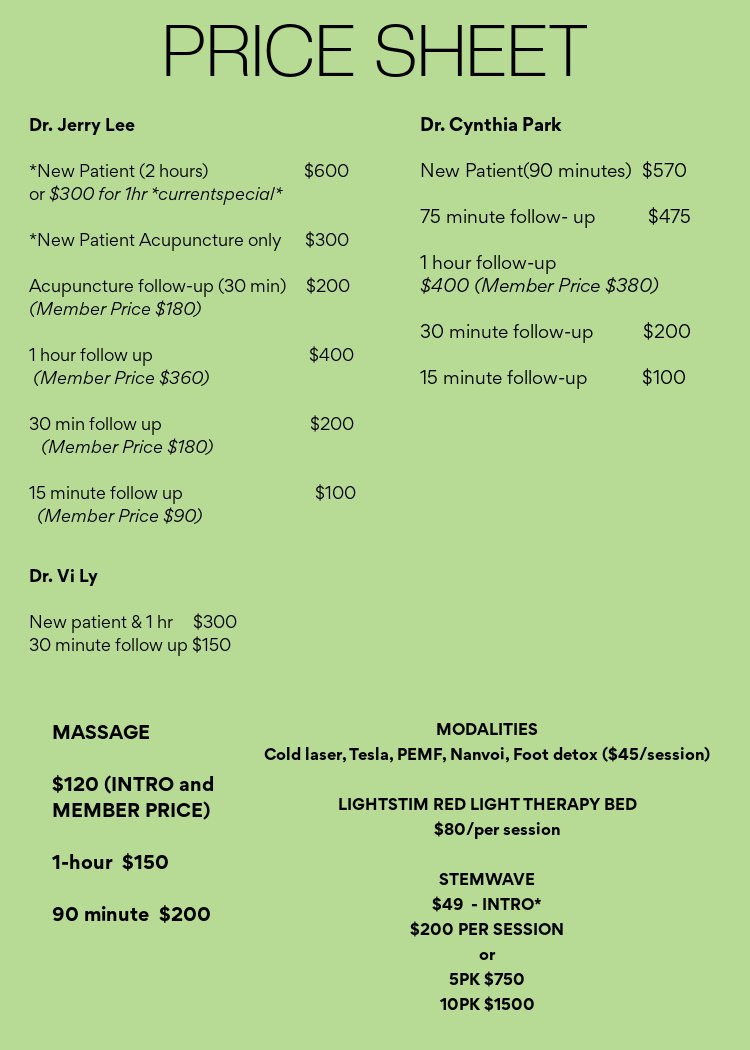 DR. JERRY LEE: Monday - Thursday 10am-6pm & Saturday by appointment